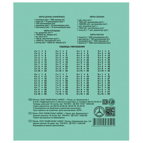 Тетрадь "Маяк" с зеленой обложкой изготовлена в соответствии с ГОСТ 12063-89. Предназначена для дошкольников и учащихся начальных и средних классов.