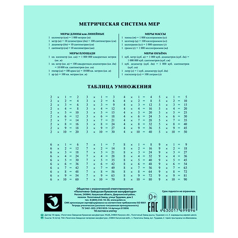 Тетрадь ЗЕЛЁНАЯ обложка 18 л., клетка с полями, офсет, "ПЗБМ", 19896