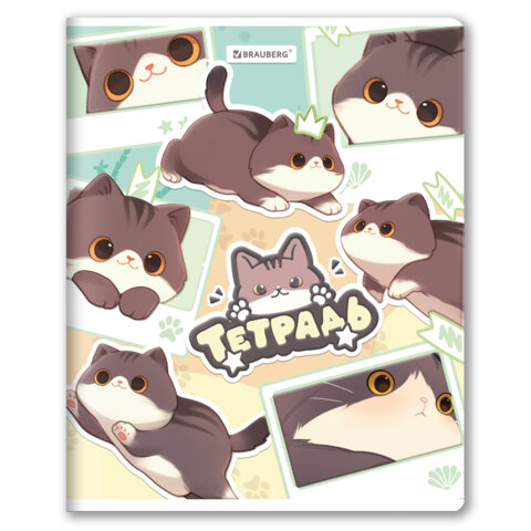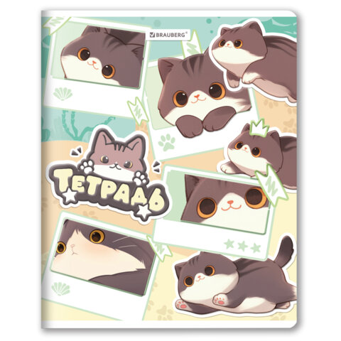 Тетрадь А5 48 л. BRAUBERG скоба, клетка, выборочный лак, кросс-серия МИЛЫЕ КОТЫ, 405193