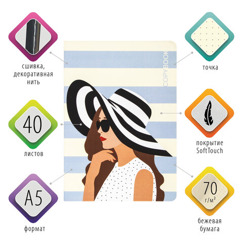 Тетрадь 40 л. в точку обложка SoftTouch, бежевая бумага 70 г/м2, сшивка, А5 (147х210 мм), БЛАЖЕНСТВО, BRAUBERG, 403800