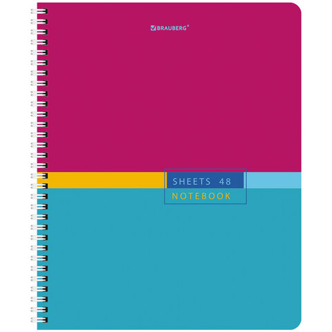 Тетрадь А5 48 л. BRAUBERG, гребень, клетка, глянцевая ламинация, "Color" (микс в спайке), 404342