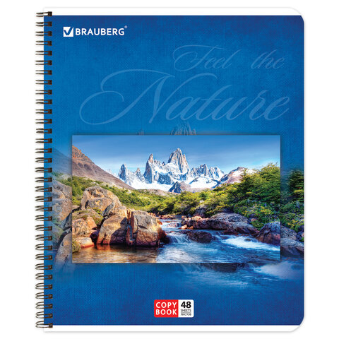 Тетрадь А5, 48 л., BRAUBERG, гребень, клетка, обложка картон, ПРИРОДА, 401874