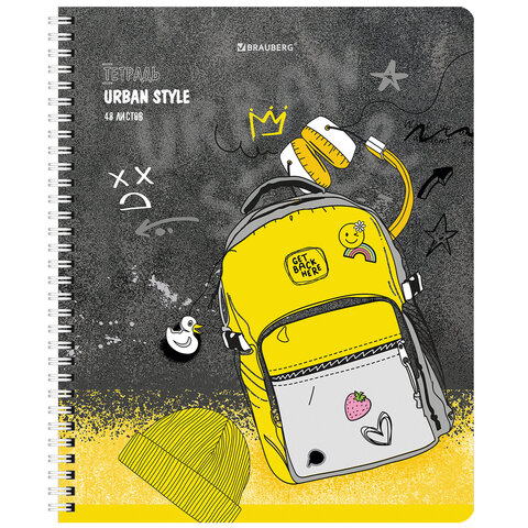 Тетрадь А5 48 л. BRAUBERG гребень, клетка, обложка картон, "Urban Style" (4 вида в спайке), 404338