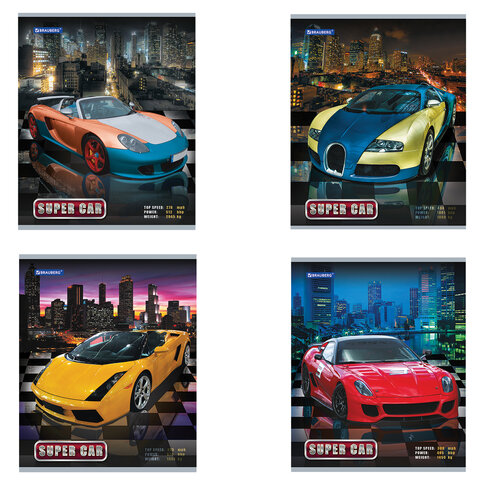 Тетради BRAUBERG с яркими обложками с изображением великолепных разноцветных суперкаров наверняка придутся по вкусу всем юным любителям скорости.