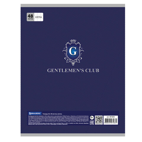 Тетрадь А5, 48 л., BRAUBERG скоба, клетка, обложка картон, КЛУБ ДЖЕНТЕЛЬМЕНОВ, 401835