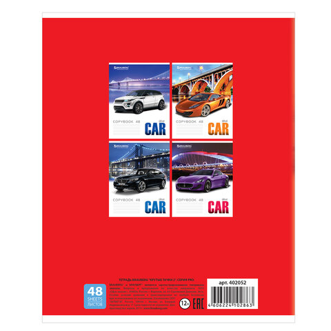Тетрадь А5, 48 л., BRAUBERG скоба, клетка, обложка картон, КРУТЫЕ ТАЧКИ 2, 402052