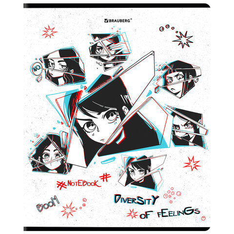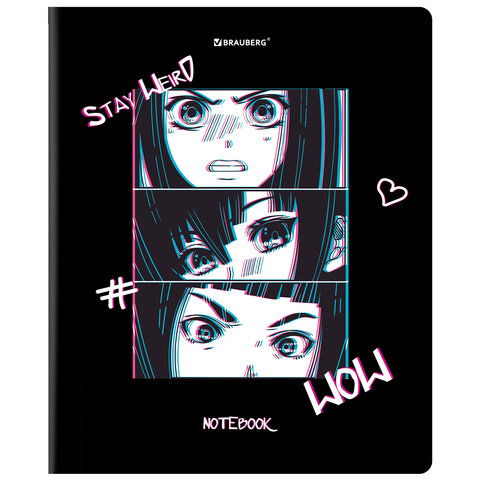 Тетрадь А5, 48 л., BRAUBERG, скоба, клетка, глянцевый лак, "Аниме" (микс в спайке), 404347