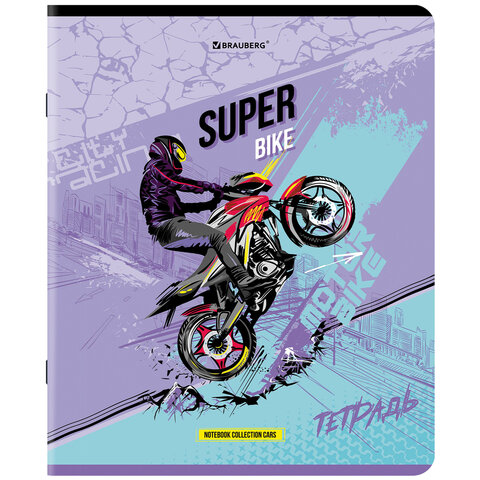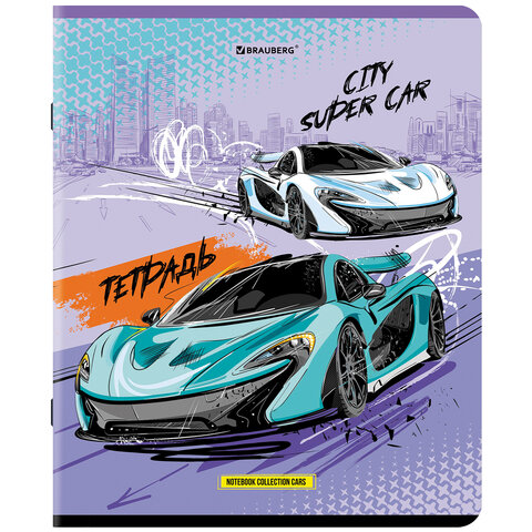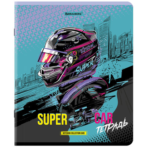 Тетрадь А5, 48 л., BRAUBERG, скоба, клетка, глянцевый лак, "Race" (микс в спайке), 404349