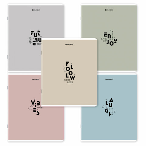 Тетрадь А5, 48 л., BRAUBERG, скоба, клетка, матовая ламинация, "Однотонный_Пастель_2", (микс в спайке), 405336