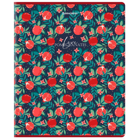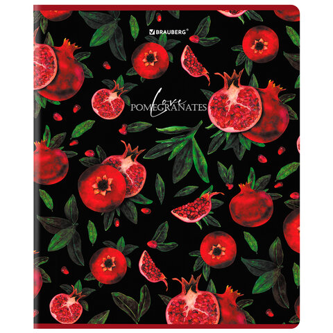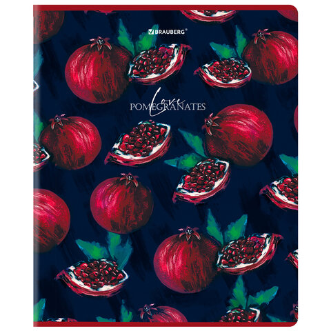 Тетрадь А5, 48 л., BRAUBERG, скоба, клетка, матовая ламинация, выборочный лак, "Гранаты" (микс в спайке), 404376