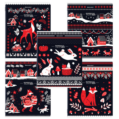 Тетрадь А5, 48 л., BRAUBERG, скоба, клетка, TWIN-лак, "Орнамент из сказки" (микс в спайке), 405650