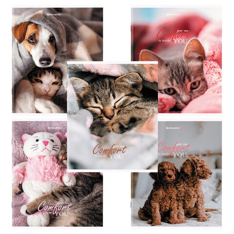 Тетрадь А5 48 л. BRAUBERG скоба, линия, обложка картон, "Питомцы" (микс в спайке), 404386