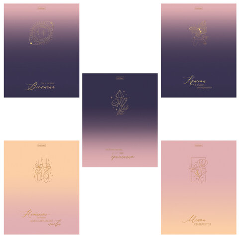Тетрадь А5 48 л., HATBER, скоба, клетка, матовая ламинация, 3D-фольга, Золотые моменты (микс), 090125, 48Т5лофВ1