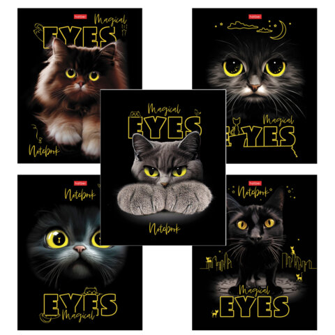 Тетрадь А5 48 л., HATBER скоба, клетка, матовая ламинация, 3D-лак, "Волшебные глаза" (микс), 088313, 48Т5лолВ1