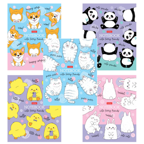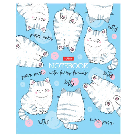 Тетрадь А5 48 л., HATBER скоба, клетка, матовая ламинация, "Пушистые хвостики" (микс в спайке), 079183, 48Т5лВ1