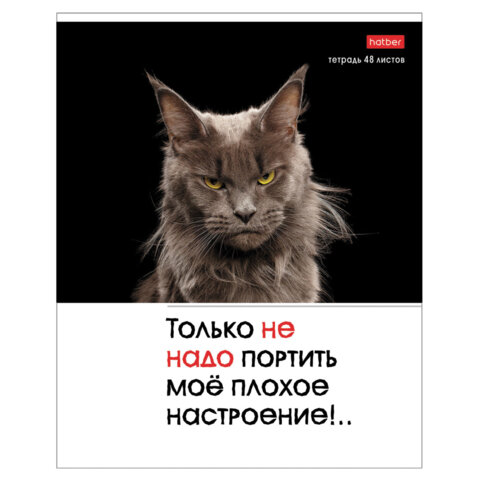 Тетрадь А5 48 л., HATBER скоба, клетка, обложка картон, "Котоюмор" (микс в спайке), 079790, 48Т5В1