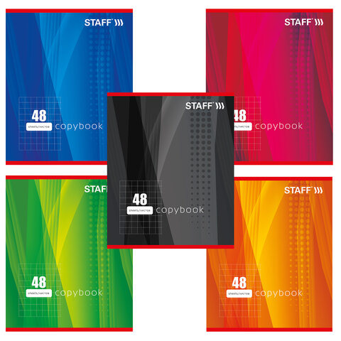 Тетрадь А5, 48 л., STAFF, скоба, клетка, офсет №2 ЭКОНОМ, обложка картон, "ОДИН ЦВЕТ" (линии), 402781