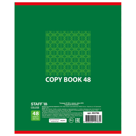 Тетрадь А5, 48 л., STAFF, скоба, линия, офсет №2 ЭКОНОМ, обложка картон, "КОНСТРУКТИВ", 402786