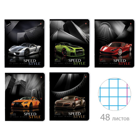 Тетрадь А5 48л. АЛЬТ скоба, клетка, глянцевый лак, "Машина. Жажда скорости" (5 видов), 7-48-432