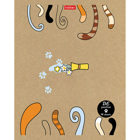 Тетрадь А5 48л. HATBER скоба, клетка, обложка крафт, "На мягких лапках" (микс в спайке), 066340, 48Т5В1