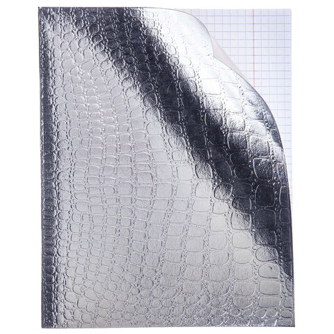 Тетрадь бумвинил А5 48 л., скоба, офсет №1, клетка, с полями, СЕРЕБРО, "Metallic", тиснение CROCO, HATBER, 071931, 48Т5бвВ1