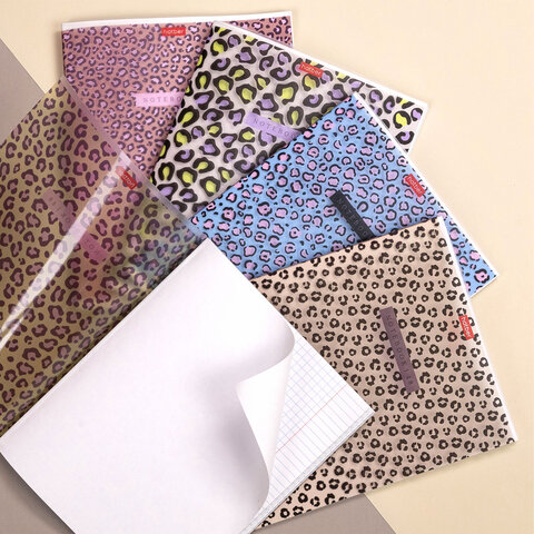 Тетрадь обложка пластик, А5 48 л., скоба, клетка, HATBER, "LEO-принт" (микс в спайке), 092368, 48Т5В1пл