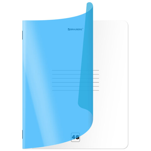 Тетрадь пластиковая обложка (НЕОН) А5, 48 листов, скоба, клетка, BRAUBERG "Smart Cover", СИНЯЯ, 405039