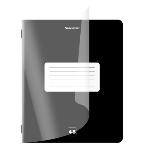 Тетрадь пластиковая обложка (прозрачная) А5, 48 листов, скоба, клетка, BRAUBERG "Smart Cover", ЧЕРНАЯ, 405040