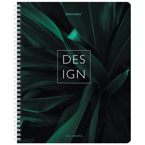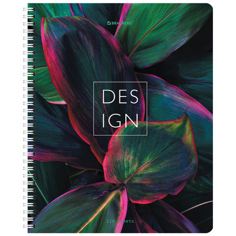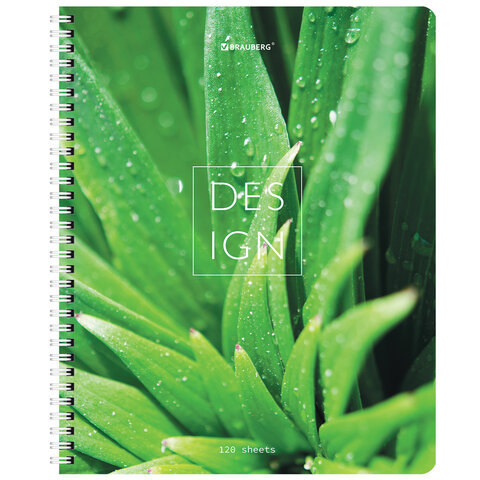 Тетрадь А5 120 л. BRAUBERG, гребень, клетка, глянцевая ламинация, "Растения" (микс в спайке), 404448