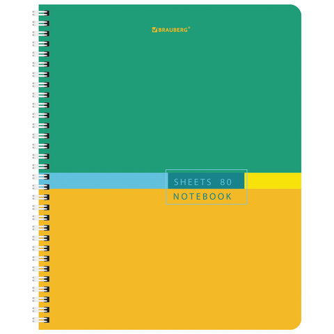 Тетрадь А5 80 л. BRAUBERG, гребень, клетка, обложка картон, "Color" (микс в спайке), 404413