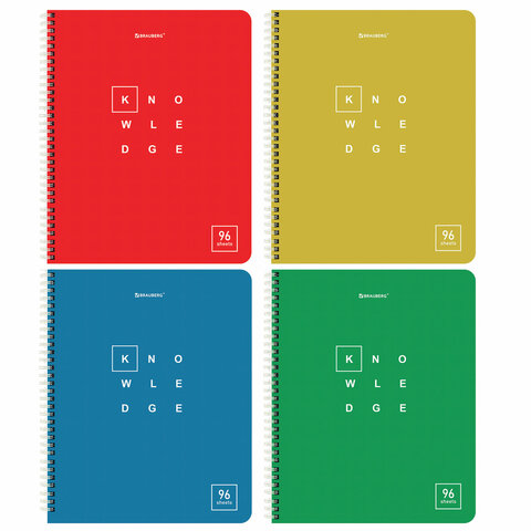 Тетрадь А5 96 л. BRAUBERG, гребень, клетка, обложка картон, "Knowledge" (микс в спайке), 404421