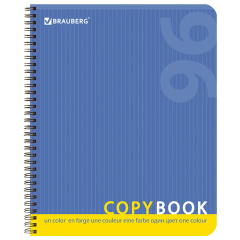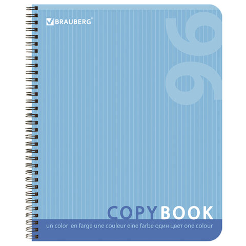 Тетрадь А5, 96 л., BRAUBERG, гребень, клетка, обложка картон, ОДИН ЦВЕТ, 401878