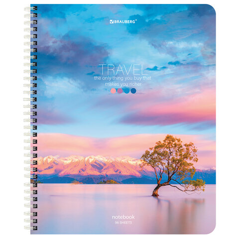 Тетрадь А5 96 л. BRAUBERG, гребень, клетка, обложка картон, "Travel" (микс в спайке), 404426