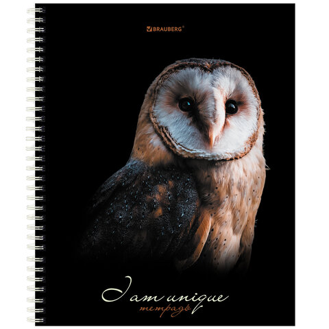Тетрадь А5 96 л. BRAUBERG, гребень, клетка, твёрдая обложка, "Совы" (микс в спайке), 404443