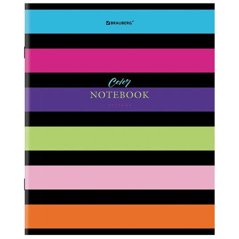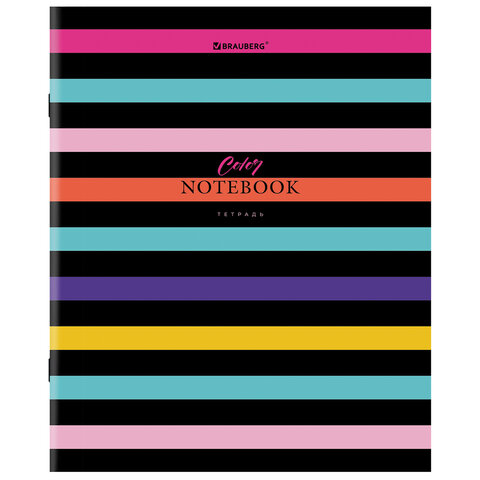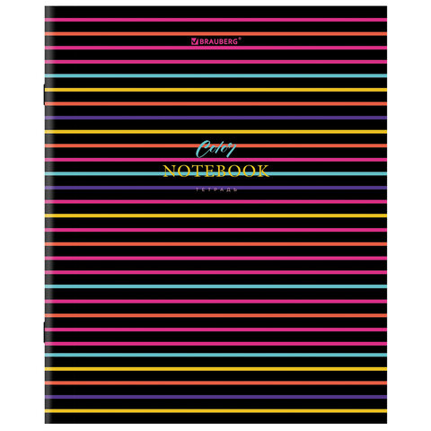 Тетрадь А5, 96 л., BRAUBERG, скоба, клетка, глянцевая ламинация, "Color Stripes", 404430
