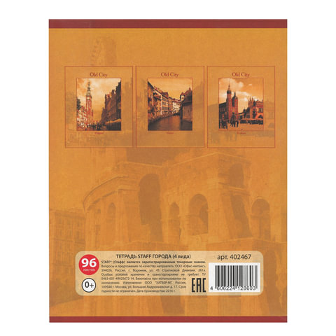 Тетрадь А5, 96 л., STAFF, скоба, клетка, офсет №2 ЭКОНОМ, обложка картон, "ГОРОДА", 402467