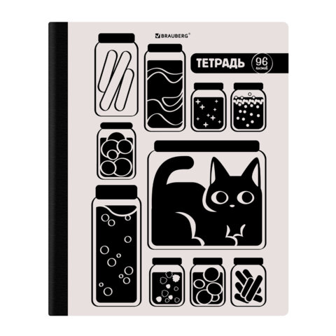 Тетрадь А5 96 л. BRAUBERG, на сшивке с корешком, клетка, обложка картон, "Кот-Непоседа", 405292