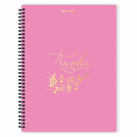 Папка-тетрадь для нот А4, 20 вкладышей на 40 страниц, на гребне, пластик, РОЗОВАЯ, BRAUBERG, 404642