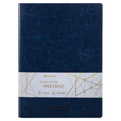 Тетрадь 60 л. в клетку обложка гладкий кожзам, сшивка, А4 (210х297мм), ТЕМНО-СИНИЙ, BRAUBERG VIVA, 403906