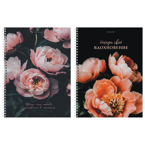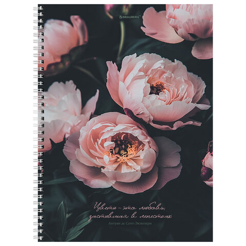 Тетрадь А4, 120 л., BRAUBERG, гребень, клетка, глянцевый лак, "Цветы", 405645