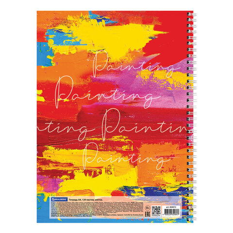 Тетрадь А4, 120 л., BRAUBERG гребень, клетка, обложка картон, "Painting", 404072