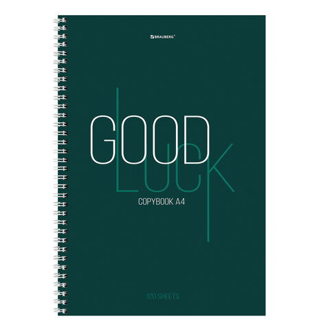 Тетрадь А4, 120 л., BRAUBERG, гребень, клетка, обложка твердая, "Good Luck", 404074