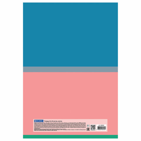 Тетрадь А4, 60 л., BRAUBERG, скоба, клетка, обложка картон, "Color", 404043