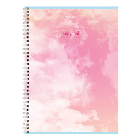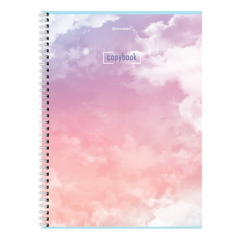 Тетрадь А4, 80 л., BRAUBERG, гребень, клетка, глянцевый лак, "CLOUD", 404053