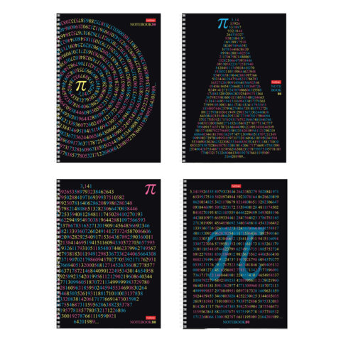 Тетрадь А4 80 л., HATBER, гребень, клетка, обложка картон, "Число Пи" (микс в спайке), 077327, 80Т4В1гр