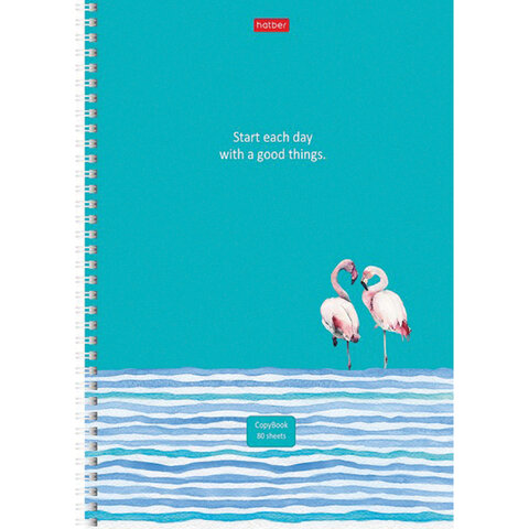 Тетрадь А4, 80 л., HATBER, гребень, линия, обложка картон, "Ассорти" (микс в спайке), 066144, 80Т4В2гр