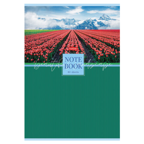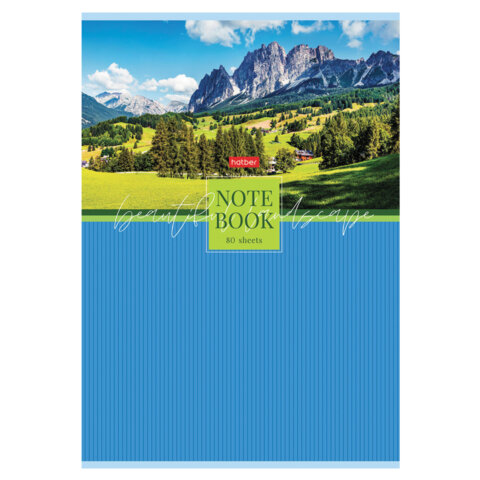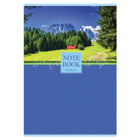 Тетрадь А4 80 л., HATBER, скоба, клетка, глянцевая ламинация, "Живописные пейзажи" (микс), 083006, 80Т4лВ1