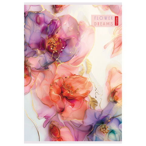 Тетрадь А4 80 л., HATBER скоба, клетка, Soft-touch ламинация, "Цветочные сны" (микс в спайке), 088813, 80Т4лВ1