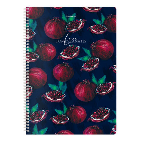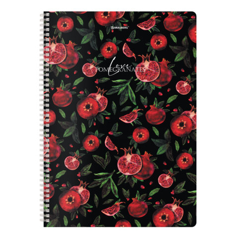 Тетрадь А4, 96 л., BRAUBERG, гребень, клетка, глянцевый лак, "Гранаты" (микс в спайке), 405314