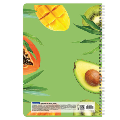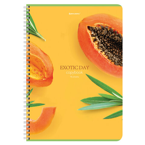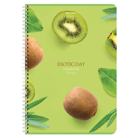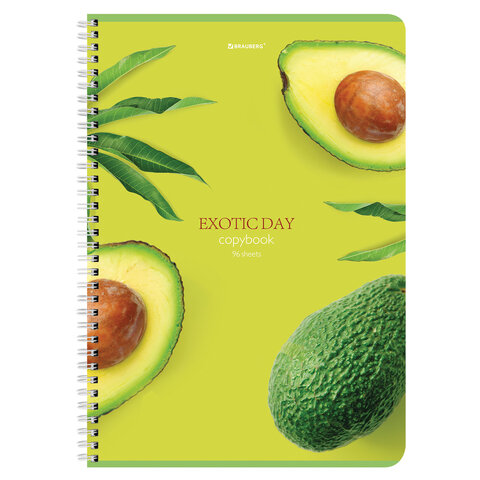 Тетрадь А4, 96 л., BRAUBERG, гребень, клетка, матовая ламинация, "Exotic", 404062